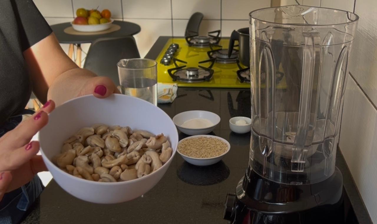 • Use água quente para facilitar a extração da cremosidade da castanha e da aveia.
